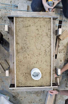 Developing the project as a place for performances and inspired by the artist Bruce Mclean, our idea was to use the learning process of rammed earth blocks to execute a performance of the expression of the body. By using three blocks of rammed earth that could be oriented, as well as wood structures that would be attached to them, our aim was to propose to the user new unique ways of occupying the space.
